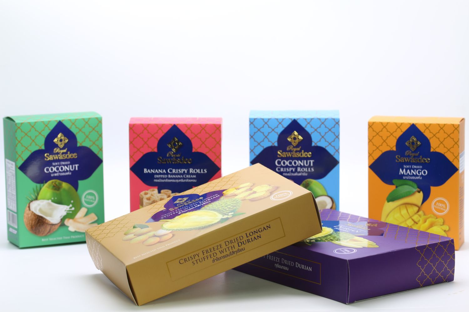 1.ทุเรียนอบกรอบ - คัดสรรวัตถุดิบมาจากทุเรียนพันธุ์หมอนทองซึ่งสามารถช่วยลดระดับไขมันหรือคอเลสเตอรอลได้ด้วยสารโพลีฟีนอล หากรับประทานในปริมาณไม่เกิน 40 กรัม (แบบอบแห้ง) นอกจากนั้นสารต่อต้านอนุมูลอิสระโดยเฉพาะพันธุ์หมอนทองยังช่วยป้องกันการเกิดโรคหัวใจ และโรคมะเร็งได้ด้วย แม้ทุเรียนจะมีไขมันมากก็ตามแต่ก็เป็นไขมันชนิดดีที่ไม่เป็นโทษต่อร่างกาย อีกทั้งเส้นใยของทุเรียนยังมีส่วนช่วยในการขับถ่าย ช่วยแก้โรคผิวหนัง และช่วยขับพยาธิอีกด้วย
